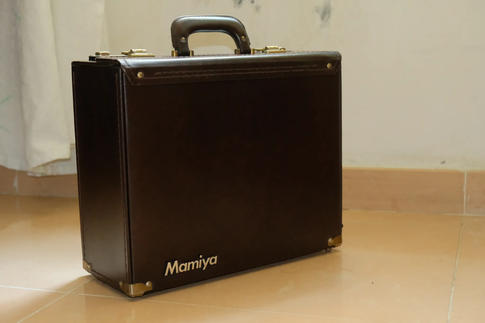 My copy of Mamiya Press Super 23 comes with a suitcase. The case is as rudimentary as a case goes. The material seemed to be hard boards wrapped in soft fake leather skins with foam paddings. The corners are protected by metal parts keeping the case sturdy while standing.