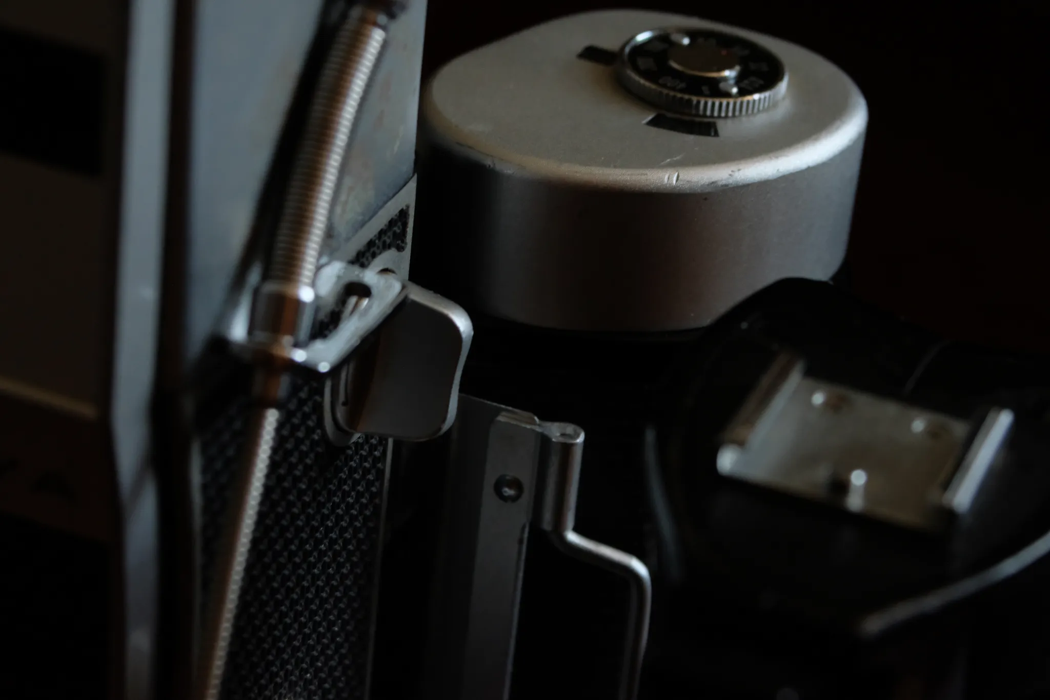 At that point in history film backs have long abandoned the red window and embraced automatic frame counting. By cranking the lever like a normal 35mm film camera, the frame is advanced until the crank locks up after arriving at the next frame. This is a useful feature as it’s now possible to shoot 135 film on these film backs without worrying about light leaks through the red window or overwinding from guesstimated film advance via by turning.