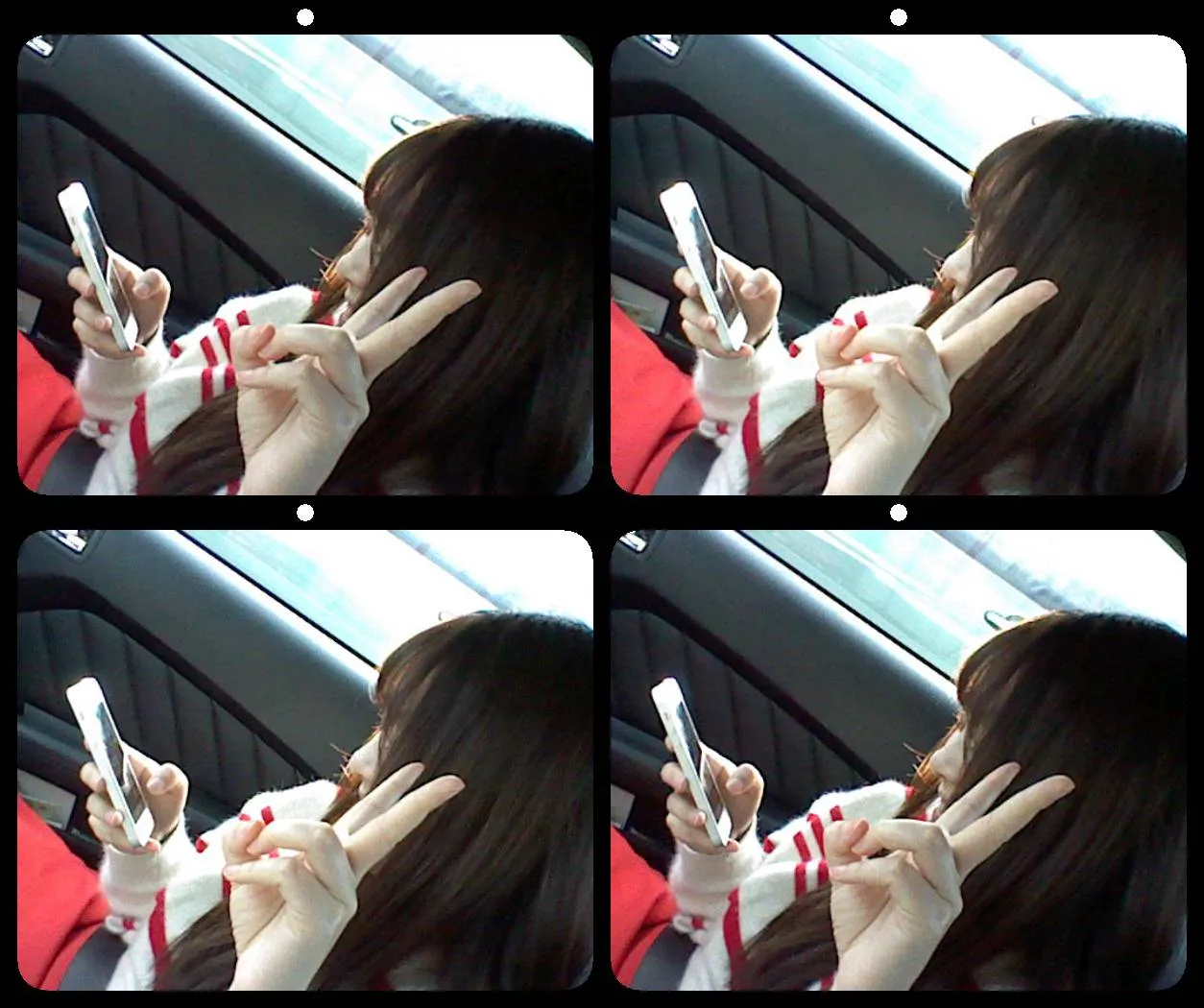 Are you able to cross your eyes to align dots on the lower part of below image? Or, not cross your eye and still align the dots on the upper part of the same? Does she look 3D to you?